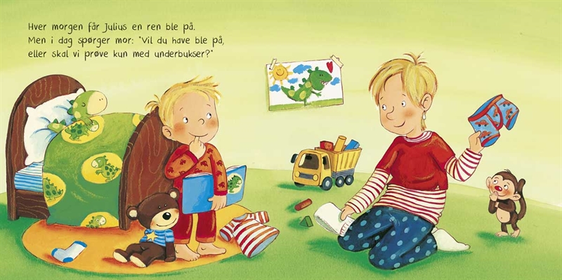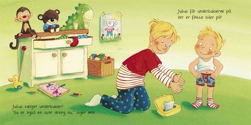 Følg med, når Julius lærer at bruge potte i denne søde papbog fra serien Jeg er stor!. Bogen kan hjælpe dit barn med at forstå pottetræning gennem genkendelige situationer og farverige illustrationer. Trykt på FSC-papir.