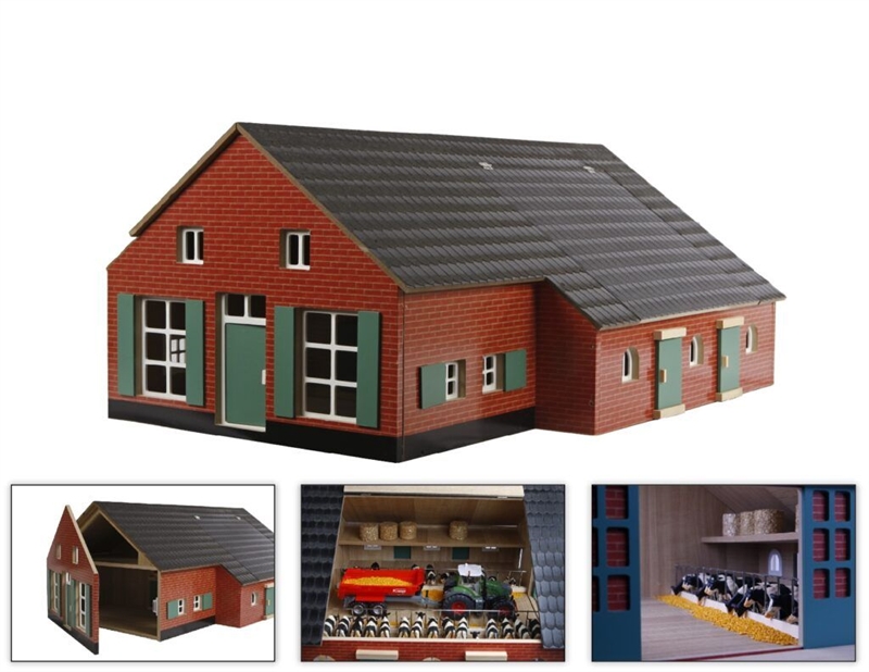 Denne charmerende Kids Globe-bondegård inviterer dit barn til at udforske landlivet i miniature. Med sin røde murstensfacade og grønne døre skaber den en autentisk stemning. Taget og gavlen kan åbnes, så dit barn får nem adgang til alle kroge af gården. Her kan de små hænder arrangere traktorer og dyr præcis, som de vil.
