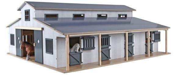 Med syv separate bokse kan børn skabe deres egen lille hesteverden. De åbne døre og vinduer gør det nemt at arrangere hestene og tilbehøret, mens opbevaringsrummet holder orden på det hele.