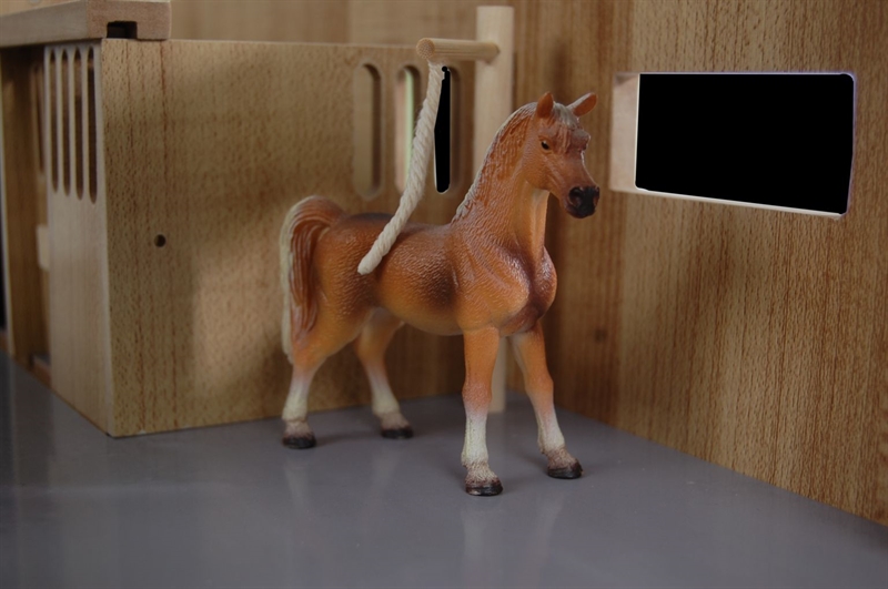 Ridehuset fra Kids Globe er fremstillet i træ, hvilket giver en robust konstruktion, der kan holde til mange timers leg. Træmaterialet tilføjer en naturlig æstetik til legetøjet og kan passe ind i mange legemiljøer. De tre hestebokse med fodertrug gør det muligt for dit barn at lege realistiske scenarier om dyrepleje og staldarbejde, hvilket kan styrke forståelsen for ansvar og pleje af dyr.