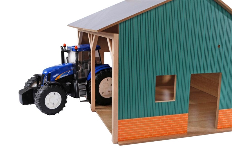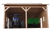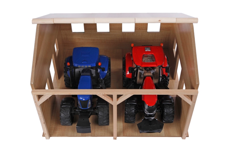 Med denne traktorgarage fra Kids Globe kan du skabe et hyggeligt hjem til dine landbrugsmaskiner. De åbne sider gør det nemt at køre ind og ud med traktorerne, og der er god plads til at parkere to BRUDER-køretøjer side om side. Den robuste konstruktion og det skrå tag giver garagen et autentisk udseende, som kan blive centrum for mange timers leg.