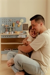 Den robuste konstruktion i naturtræ sikrer, at arbejdsbænken kan holde til mange timers kreativ leg. De gennemtænkte detaljer og den stabile konstruktion gør den til en tryg legekammerat, der kan følge dit barn gennem talrige byggeprojekter.