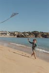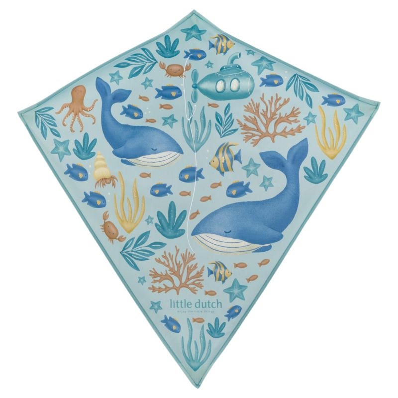 Når vinden blæser, kan dit barn tage havets dyr med op i luften. Little Dutch - Drage - Ocean World viser illustrationer af havdyr og planter, der svæver gennem himlen. Dragen måler 65 x 65 cm og kan flyve i vindstyrke 2-5 Beaufort. Med flyvesnor og håndtag inkluderet kan I komme i gang med det samme. Dragen er lavet af ripstop-dragestof, der holder selv i kraftig blæst, og glasfiberstænger giver den en stabil ramme. Den leveres i en polybag med et kort.