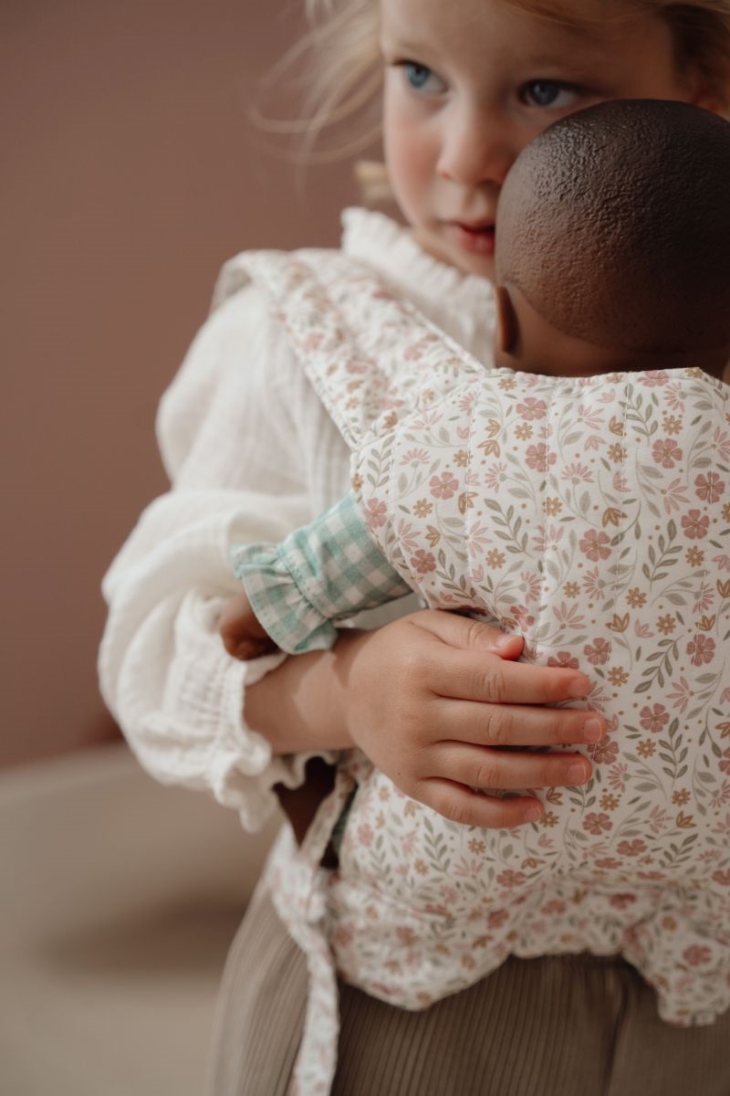Lad dit barn opleve glæden ved at bære sin yndlingsdukke i denne søde Little Dutch bæresele. Det robuste hoftebælte giver tryghed, mens de polstrede skulderstropper sikrer behagelig komfort under legen. Det bløde blomstermønster i pink og grønne nuancer skaber en eventyrlig stemning.