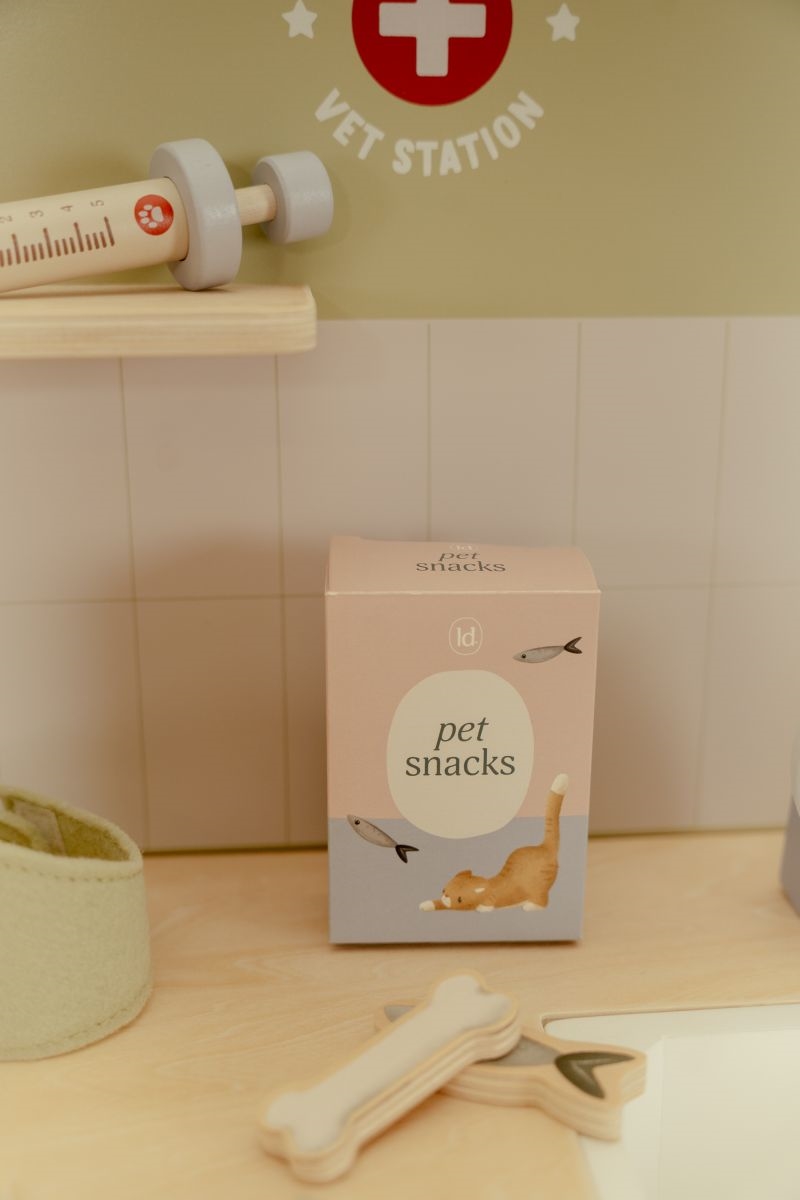 Velkommen til en charmerende dyrlægeklinik i træ fra Little Dutch, hvor små dyrlæger fra 3 år kan udfolde deres pleje for kæledyr. Med en praktisk håndvask med udtrækkeligt brusehoved og hylder til alt det vigtige udstyr bliver det sjovt at hjælpe små patienter. Det medfølgende pandebånd og klips til røntgenbilleder gør oplevelsen ekstra autentisk.