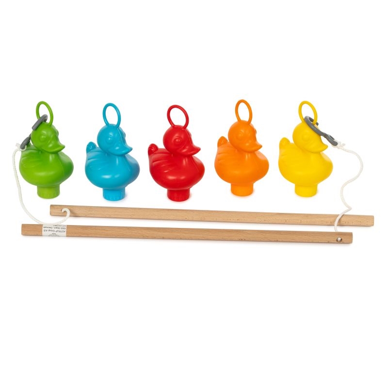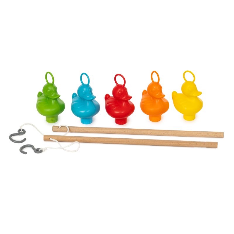 Kan du fange alle de farverige ænder, der svømmer rundt i badekarret? Med MaMaMeMo - Badeænder med fiskestang kan dit barn prøve kræfter med en lille fisketur, hvor hver and har en løkke på toppen, som skal fanges med krogen på fiskestangen. De livlige farver fanger øjnene, og snoren gør det spændende at se, om anden bider på. Dette sæt kan bruges både i badekarret og i haven, når solen skinner, og poolen står klar.