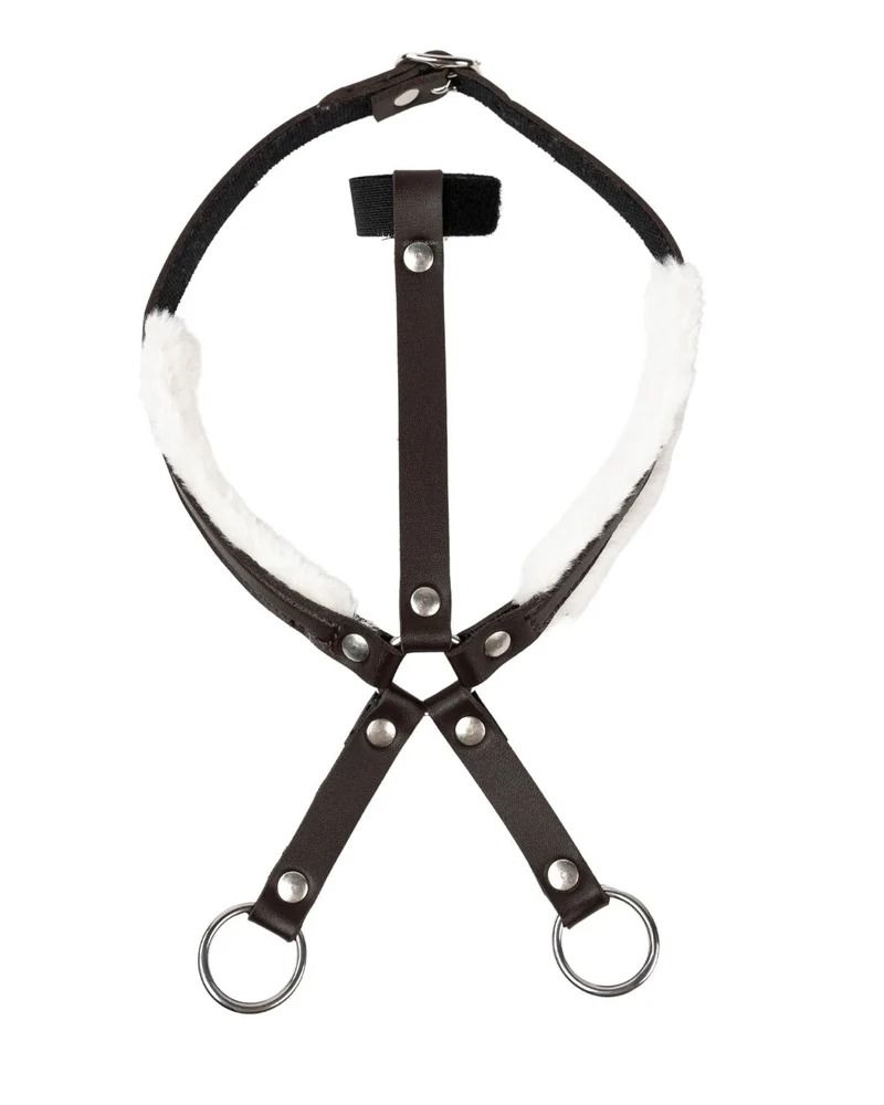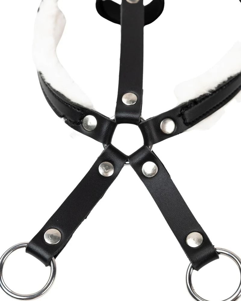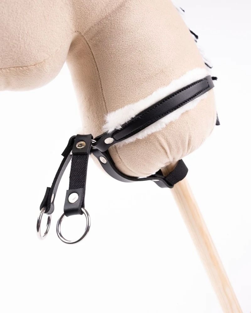 Denne martingal er håndlavet til kæpheste og giver en autentisk følelse under leg. Stroppen er fremstillet i sort imiteret læder og foret med blødt lammeskind, der sikrer komfort mod kæphestens hals. Velcrolukningerne gør monteringen nem og hurtig.