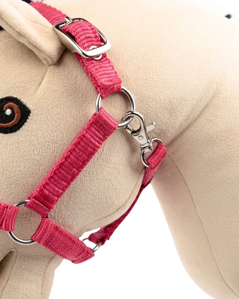 Har du en kæphest, der skal have det fineste udstyr? Den pink grime fra My Hobby Horse kan være den perfekte følgesvend til alle dine rideoplevelser. Grimen er lavet af slidstærk nylon, som kan holde til mange ture i skoven og lange dage i stalden. Næse- og nakkeremmen er foret med blødt fleece, så din kæphest får en behagelig pasform. De pink stropper med metalringe og karabinhage gør det nemt at justere grimen, så den sidder, som den skal.