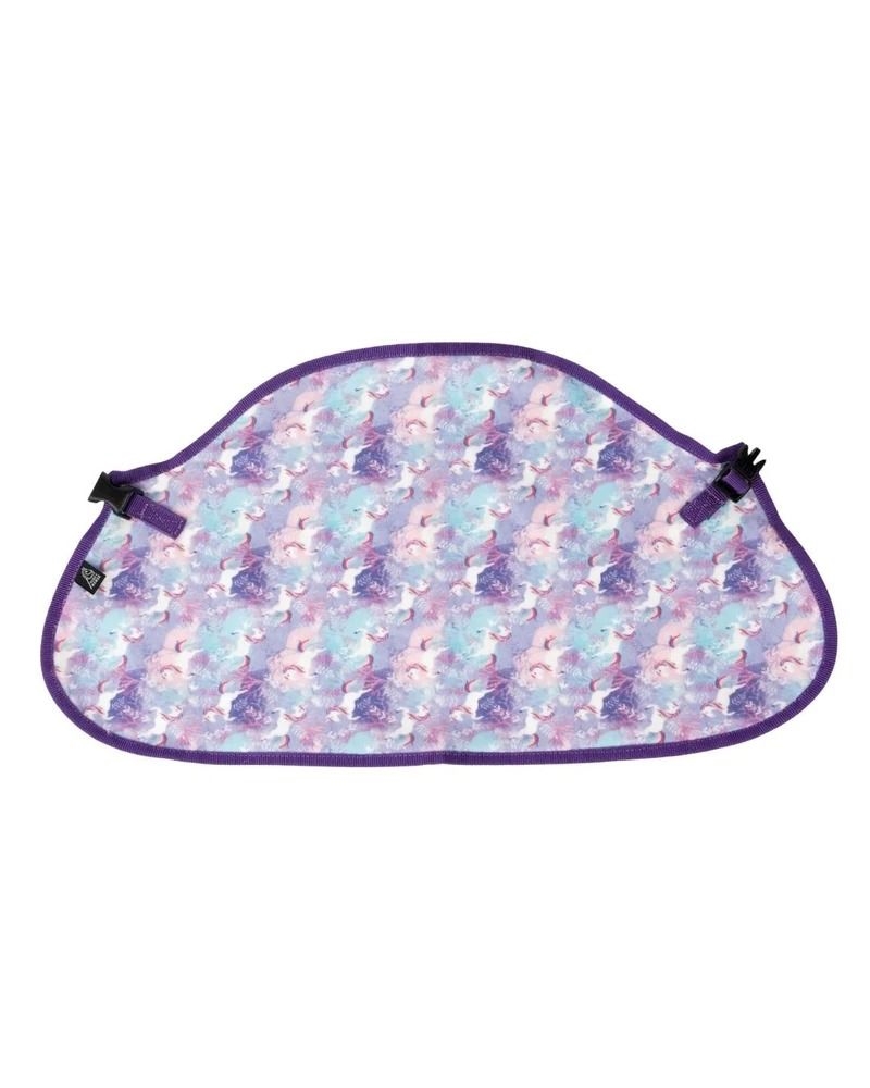 Har du en kæphest, der fortjener noget ekstra? Dette fleecedækken bringer farver og fantasi til din hobbyhorse-træning. Unicorn-printet i bløde pastelfarver dækker hele dækkenet, og den lilla kant giver et fint finish. Dækkenet kan holde din kæphest varm, når I træner sammen, og det passer til stalden. Fleecematerialet er blødt og behageligt, og designet med enhjørninger i lyserøde, lilla og lyseblå nuancer gør det til noget særligt. Du kan nemt fastgøre det med spændet, så det sidder godt fast.