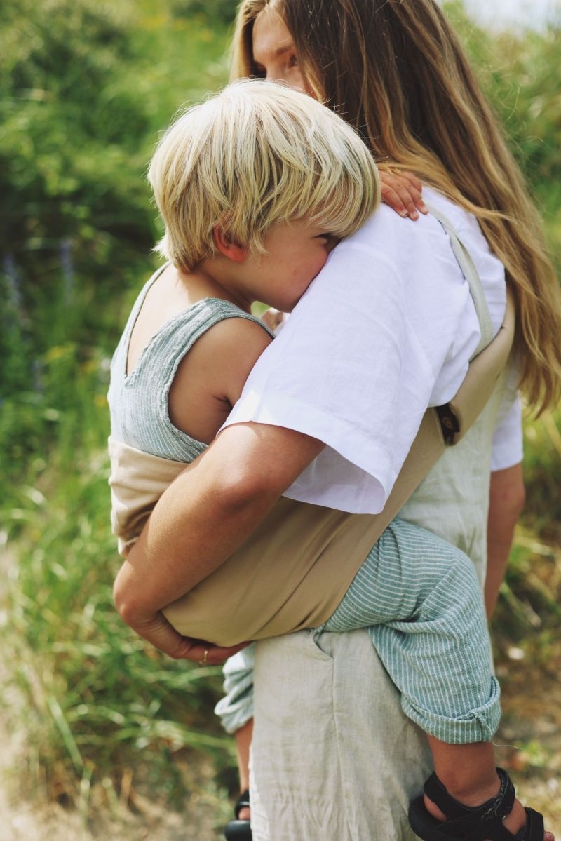 Wildride-bæreselen i Basic Beige fordeler vægten jævnt over din krop, så du kan bære dit barn uden at belaste ryggen og skuldrene. Den kan bruges fra dit barn er 9 måneder og op til 20 kg, hvilket giver dig en langvarig løsning. Bæreselen er nem at folde sammen og fylder næsten ingenting, når den er pakket væk. Det gør den let at transportere i bil, på cykel eller i din taske, så du altid har den med, når du har brug for den.